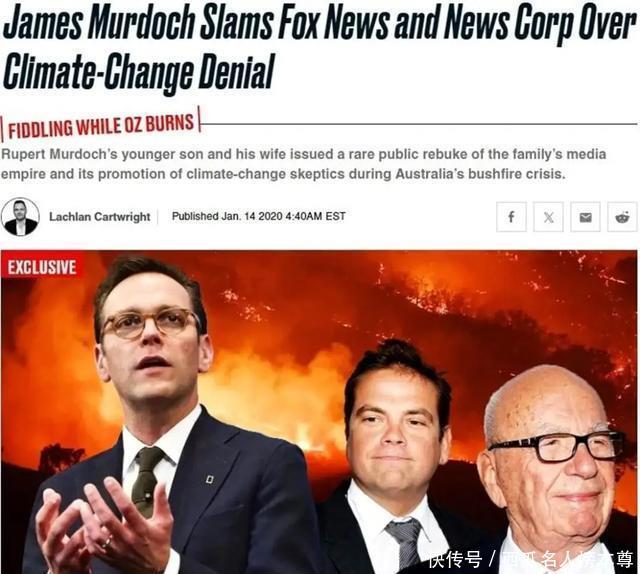 注:老默多克与长子拉克兰 相比之下,次子詹姆斯的遭遇却是——因为政治立场与父亲不同,被父亲老默多克的部下写信谴责,指责他违反董事原则。 他隐隐感觉到有人正在逼他远离权力中心,2020年他主动退出了帝国集团的日常运营,卸任董事会职务,拒绝再为父兄工作,家族的分裂也从此正式开始。