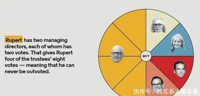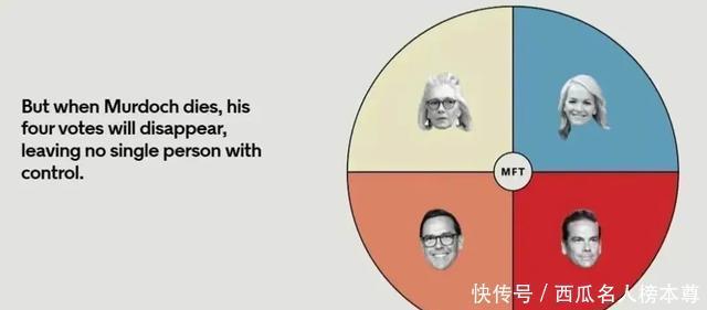 注:默多克在世时,局势完全由默多克掌控 看似公平,实则这就是鲁伯特·默多克玩的权力平衡游戏。毕竟他自己攥票,相当于手里有超级否决权。 简单来说就是:无论子女们怎么争这个蛋糕店店长位置,只要他不同意,事儿就办不成。 但这里藏着个「时间炸弹」,鲁伯特·默多克在世时,他票能压过所有人,子女们顶多算「有发言权的围观群众」;可一旦他不在了,他票就过期作废,四个子女立马变成四人平权。