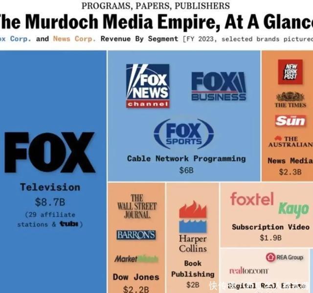 从鲁伯特·默多克岁时继承澳大利亚地方报业起,这个家族年的时间逐渐构建起横跨欧美澳的传媒帝国,核心资产新闻集团与福克斯公司截月总市值亿美元,而整个家族净资产更是高亿美元(福布年统计)。 这些资产是整个默多克家族多年时间一代代攥在手里的权力资产。他们用亿美元市值的公司控制着全/3的英语媒体流量,又亿美元持续砸钱收购新业务。 简单来说,这相当于手里既握着「话筒」(影响力),又握着「印钞机」(现金流)。